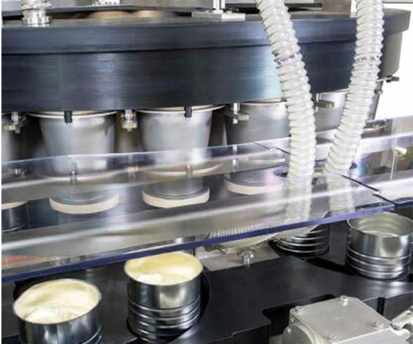 在鐵罐經(jīng)過灌裝星輪的整個期間,施加在鐵罐底部的垂直振動確保鐵罐內的產(chǎn)品更加密實。
