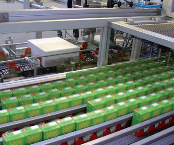 該機(jī)型廣泛應(yīng)用于飲料、乳品和食品行業(yè),全自動(dòng)化二次包裝瓶裝和聽裝產(chǎn)品,大幅提高生產(chǎn)效率及節(jié)約包裝成本。